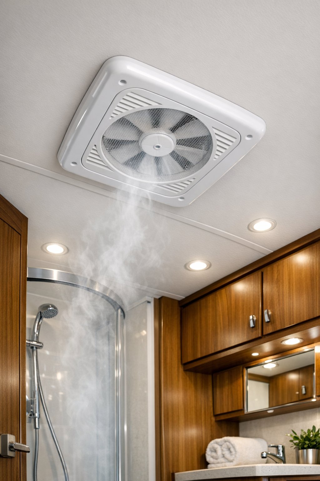 A vent fan helps stop steam and keeps your RV bathroom fresh. You cut down mold risk and protect cabinets and trim from water damage.